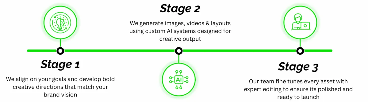 We combine advanced AI-driven editing with human creative expertise to refine every frame, ensuring your content isn't just generated but it’s perfected. By enhancing lighting, texture, and pacing, we build visually magnetic assets that command the attention of your target audience.