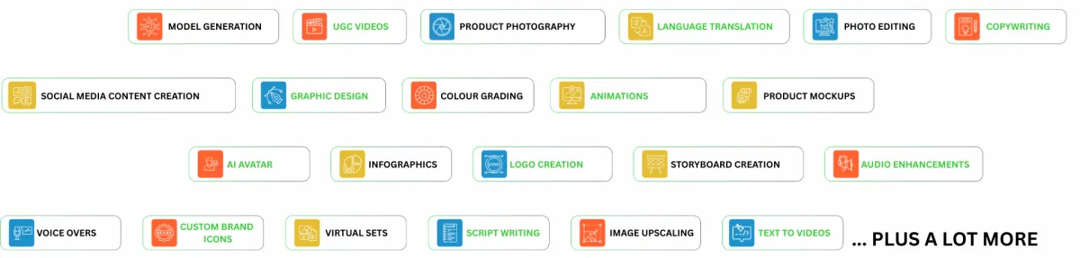 Yes. We generate content from scratch using AI, create stunning CGI videos and animations, provide professional videography services, and offer comprehensive editing for all content types.